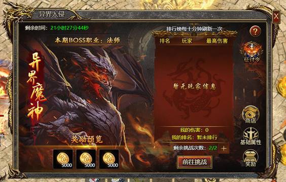 F. 随着开服天数变化,异界魔神种类以及特性都会发生变化!激活征讨令可对异界魔神造成3%的额外伤害,且获得20%的讨伐币奖励加成(包括排行奖励)级。