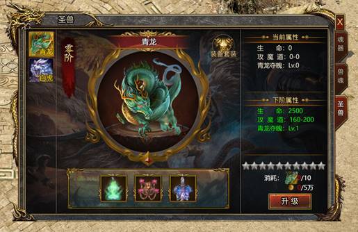 A. 通过商店—灵符—购买圣兽信物来提升圣兽等级,提升圣兽等级可提升人物属性并获得特殊的攻击效果,高等级圣兽可抵抗低等级圣兽的效果。